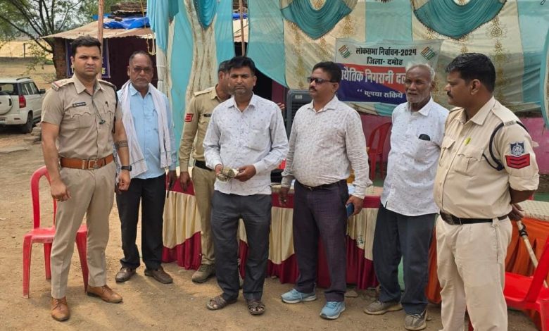 दमोह । कलेक्टर और जिला निर्वाचन अधिकारी दमोह सुधीर कोचर के निर्देश व पुलिस अधीक्षक श्रुत कीर्ति सोमवंशी (भा. पु.से.) द्वारा निष्पक्ष निर्वाचन के संपादन हेतु जिले के सीमावर्ती थाना क्षेत्र में राजस्व एवं पुलिस टीम में संचालित एस एस टी प्वाइंट के साथ में सतत एवम सघन चेकिंग कार्यवाही हेतु समस्त थाना प्रभारियों को निर्देशित किया गया था। अतिरिक्त पुलिस अधीक्षक संदीप मिश्रा के निर्देशन एवम एसडीओपी हटा नीतेश पटेल के कुशल मार्गदर्शन में थाना प्रभारी गैसाबाद उप निरीक्षक विकास सिंह चौहान द्वारा हमराही स्टाफ के साथ सघन चेकिंग करते हुए वाहन क्रमांक युपी 33 बीटी 8455 में सफर कर्ता पंकज कुमार पिता बाबू शंकर शुक्ला उम्र 39 वर्ष निवासी तीवारन खेड़ा खजुरा थाना खीरो जिला रायबरेली। उत्तर प्रदेश के कब्जे से 100000₹ कैश जप्त किया है।
