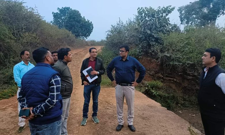 सीईओ ने ऊबड़ खाबड़ पगडंडी मार्ग से पैदल चलकर और मोटरसाइकिल से किया प्रस्तावित चेक डैम कार्यस्थल का मुआयना