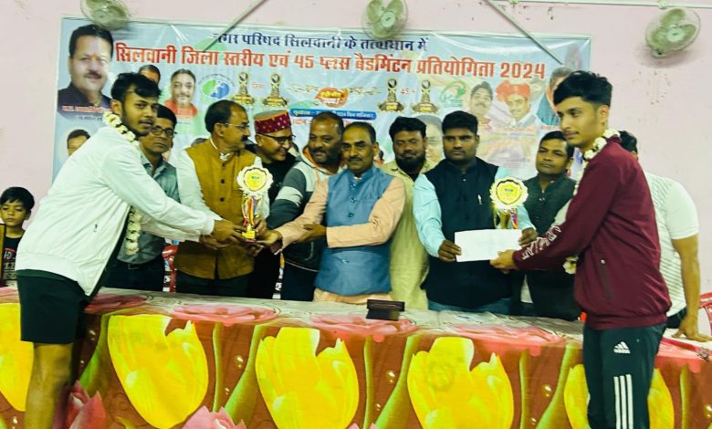 सिलवानी । नगर परिषद सिलवानी के तत्वाधान में सिलवानी सोशल सोसायटी के बैनर तले आयोजित जिला स्तरीय बैडमिंटन प्रतियोगिता का रविवार को समापन एवं पुरस्कार वितरण किया गया । ओपन बैडमिंटन प्रतियोगिता में रायसेन के सचिन और जोंटी ने सिलवानी के विश्व जैन और मोहम्मद अली को हराकर खिताब जीता जबकि वेटरन प्रतियोगिता में उदयपुर के धर्मेंद्र राजपूत की टीम ने सिलवानी के दीना श्रीवास्तव और देवेंद्र श्रीवास्तव को हराकर खिताब जीता। पुरस्कार वितरण नगर परिषद अध्यक्ष प्रतिनिधि विभौर नायक द्वारा किया गया। इस अवसर पर पार्षद प्रदीप कुशवाह, गुड्डू भाई, दीपेश जैन, मदन रघुवंशी, वन परिक्षेत्र अधिकारी महेंद्र पलेचा, जावेद खान, निखिलेश राय, शेख जावेद, राशिद उपस्थित रहे। कार्यक्रम का संचालन मोहम्मद तारिक द्वारा किया गया।