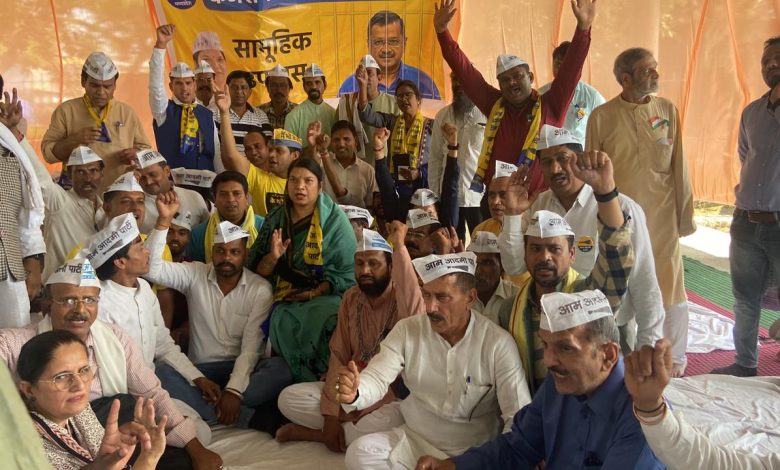 आम आदमी पार्टी के नेता और कार्यकर्ता, दिल्ली के मुख्यमंत्री की गिरफ्तारी के खिलाफ सामूहिक उपवास रखा गया!