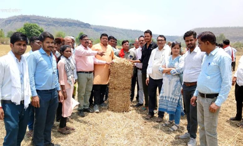 नरवाई प्रबंधन हेतु अत्याधुनिक मशीनों द्वारा नरवाई के बंडल बनाने का प्रदर्शन किया गया