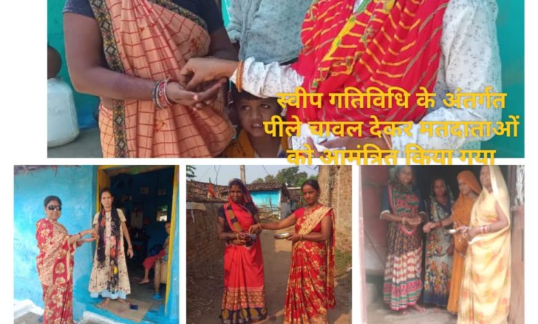 मझौली । पाटन विधान सभा अंतर्गत 2 अप्रैल 2024 मंगलवार को मझौली, इंद्राना, पटोरी आदि में मतदाता जागरूकता अभियान के तहत् हल्दी चावल से न्यौता, मतदाता सभा आदि का अयोजन किया गया। समस्त मतदाताओं को अपने मताधिकार का प्रयोग कर 19 अप्रैल को मतदान करने हेतु जागरूक किया गया। इस अवसर पर सभी नव मतदाता एवं महिला मतदाताओं को आंगनबाड़ी कार्यकर्ता सहायिकाओं ने घर घर जाकर पीले चावल के माध्यम से अधिक से अधिक संख्या में मतदान करने हेतु प्रेरित किया गया।