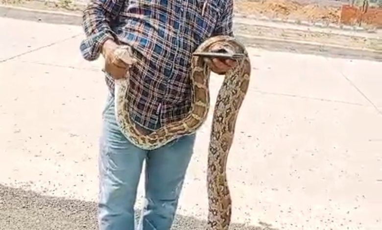 एक सर्प विशेषज्ञ की मदद से विशाल अजगर का किया रेस्क्यू।