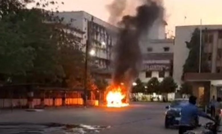 108 एंबुलेंस में मरीज को छोड़ने के बाद अचानक लगी आग, धू-धू कर जली