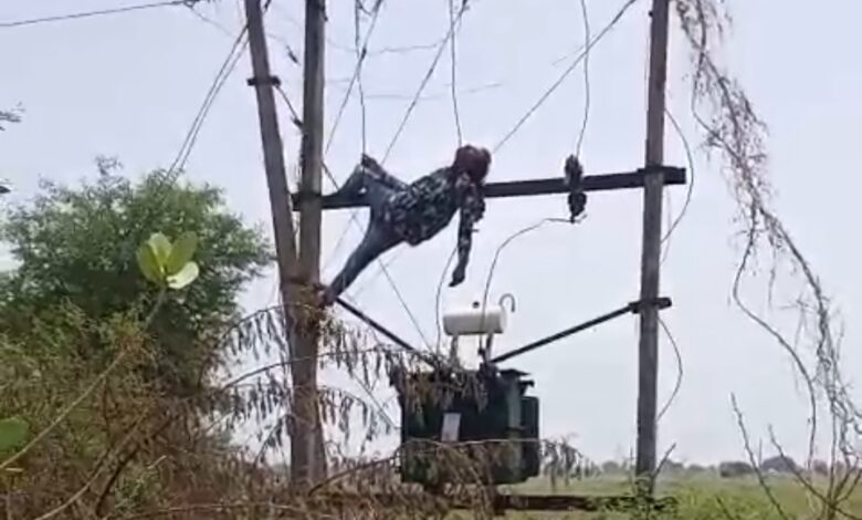 बिजली के करेंट से खंभे और डीपी पर ही चिपका युवक, मौत