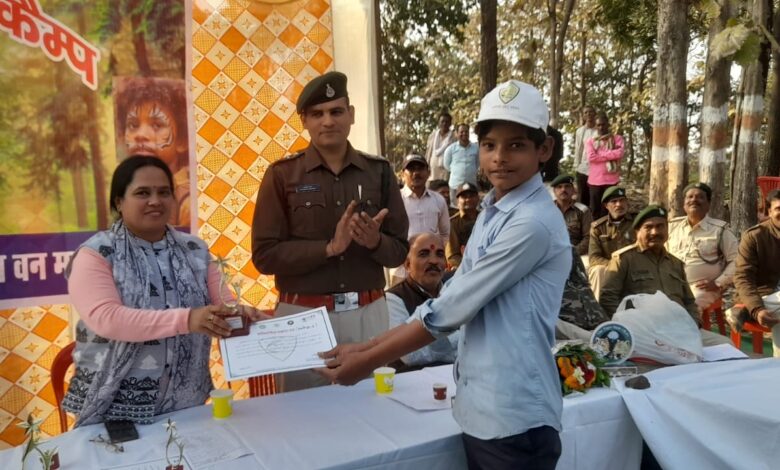 अनुभूति कार्यक्रम के अंतर्गत चित्रकला, प्रश्नोत्तरी एवं निबंध प्रतियोगिताओं का आयोजन किया गया, जिसमें उत्कृष्ट प्रदर्शन करने वाले छात्र-छात्राओं को वनमण्डलाधिकारी प्रतिभा शुक्ला, रेंजर आदर्श मिश्रा, जनप्रतिनिधियों द्वारा पुरस्कृत किया गया।