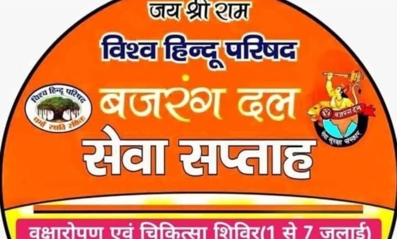 बजरंग दल का सेवा सप्ताह 1 जुलाई से 7 तक