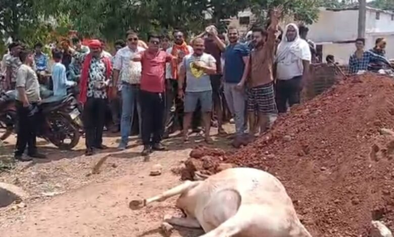 गौवंश की मौत पर बजरंग दल का हल्लाबोल, ठेकेदार पर लापरवाही के आरोप
