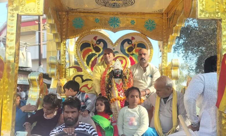 भगवती महाकाली देवी की प्राण प्रतिष्ठा से पूर्व नगर में भव्य शोभा यात्रा निकाली गई, जिसे देखने के लिए नगरवासी उमड़ पड़े।