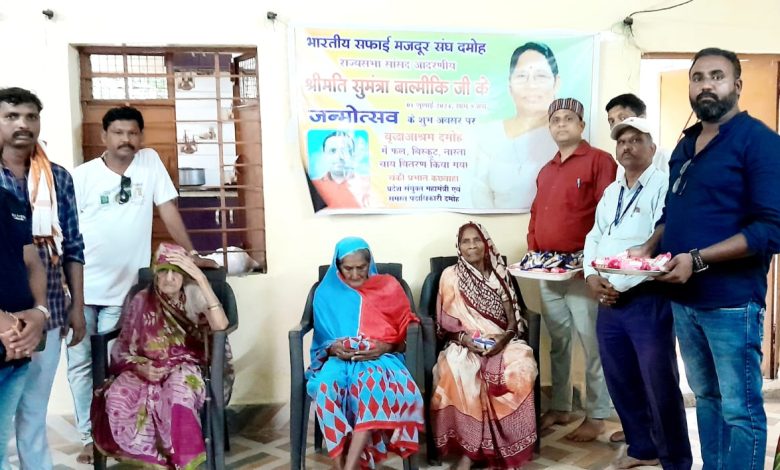 दमोह। राज्यसभा सांसद आदरणीय सुमित्रा वाल्मीकि के जन्मदिन पर भारतीय सफाई मजदूर संघ के प्रदेश संयुक्त महामंत्री प्रभात (चंकी) कछवाहा के द्वारा वृद्धआश्रम में वृद्धजनों के साथ जन्मदिन मनाया गया एवं फल नाश्ता चाय वितरण किया गया।