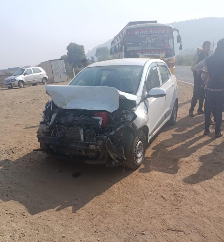 बस ओर कार मे भिड़ंत, ड्राइवर बस छोड़कर भागा