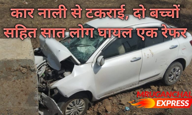 कार नाली से टकराई, दो बच्चों सहित सात लोग घायल एक रेफर