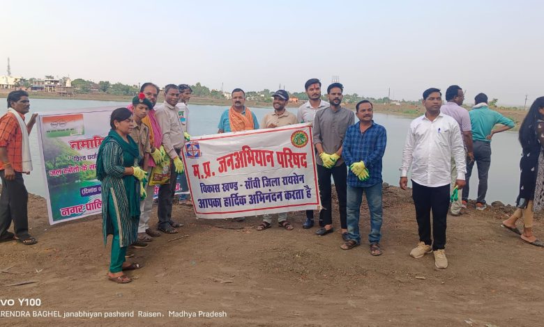 सांचेत । नमामि देवी गंगे परिरोजना जल संरक्षण एंव विश्व पर्यावरण दिवस पर ग्राम खंडेरा में माता मंदिर के पास के तालाब में नवांकुर संस्था एवं ग्राम विकास प्रस्फुटन समिति के द्वारा श्रमदान कर सफाई की गई एवं मंदिर प्रांगण में आम के पौधे का वृक्षारोपण किया गया जिसकी जिम्मेदारी मंदिर के सदस्यों द्वारा ली गई । उपरांत मंदिर परिसर में पर्यावरण संगोष्ठी का आयोजन कर पर्यावरण संरक्षण के विषय में विःखः समन्वयक आनंद कुमार नेमा एंव अतिथियो द्वारा अपने विचार व्यक्त किया वह सभी लोगों से अधिक से अधिक पौधारोपण कर पर्यावरण संरक्षण में भूमिका निर्माण करने का आह्वान किया गया । जिसमें जनपद सदस्य प्रतिनिधि मनीष बबेले, मंदिर पुजारी दिनेश दुबे, सरपंच खेमराज बघेल, ग्राम प्रमुख रघुवीर सिंह बघेल, राहुल बघेल, अभिषेक बघेल, रामकुमार, अमित साहू, अजय राजपूत, नरेंद्र बघेल, मैंटर्स नेहा वर्मा आदि लोग उपस्थित रहे। कार्यक्रम उपरांत नवांकुर संस्था प्रतिनिधि नरेंद्र बघेल द्वारा सभी का आभार व्यक्त किया गया यह कार्यक्रम आज 5 जून से 16 जून तक गांव गांव शहर शहर के सभी तालाबों कुंआ वाबडियो की साफ सफाई जन सहयोग एवं श्रमदान किया जाना तय किया गया है रायसेन नगर पालिका के साथ में मिल कर भी पूरनपुरा तालाब रायसेन में श्रमदान किया मध्यप्रदेश जन परिषद के ब्लॉक समन्वयक आनंद कुमार नेमा, नवांकुर संस्था अध्यक्ष नरेन्द्र बघेल, मैंटर्स हीरालाल शर्मा, योगेश कुमार गौर, नेहा वर्मा, नगर विकास प्रस्फुटन समिति रायसेन से ऋषभ भार्गव आदि लोग सम्मिलित हुए।