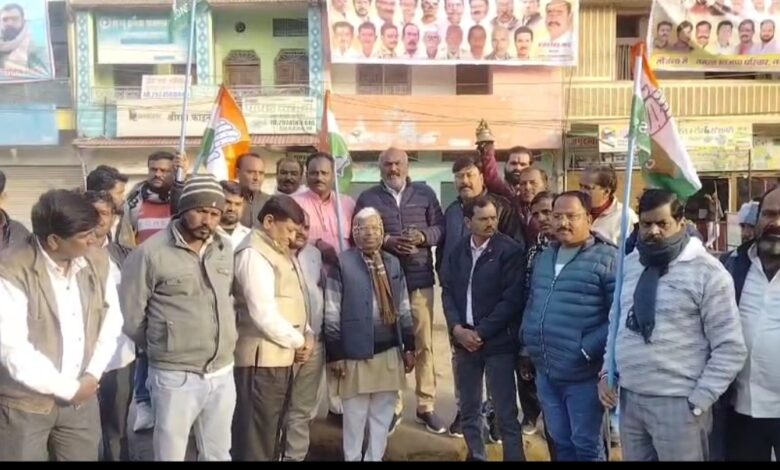 कांग्रेसी न्यायालय के सामने एकत्रित हुए वहां से जुलूस की शक्ल में भाजपा कार्यालय तक गए और जमकर नारेबाजी की घंटा बजाया।
