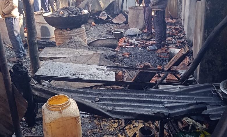 भीषण आग लगने से गौरझामर बस स्टेण्ड की आठ दुकाने स्वाहा