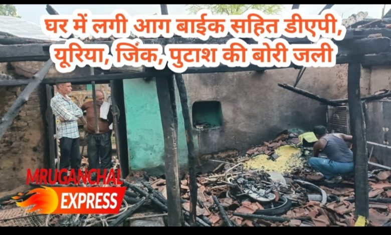 घर में लगी आग बाईक सहित डीएपी, यूरिया, जिंक, पुटाश की बोरी जली
