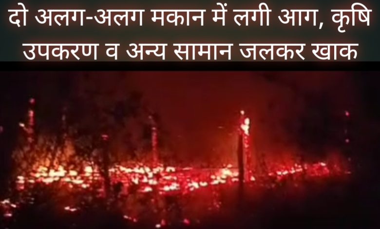 दो अलग-अलग मकान में लगी आग, कृषि उपकरण व अन्य सामान जलकर खाक