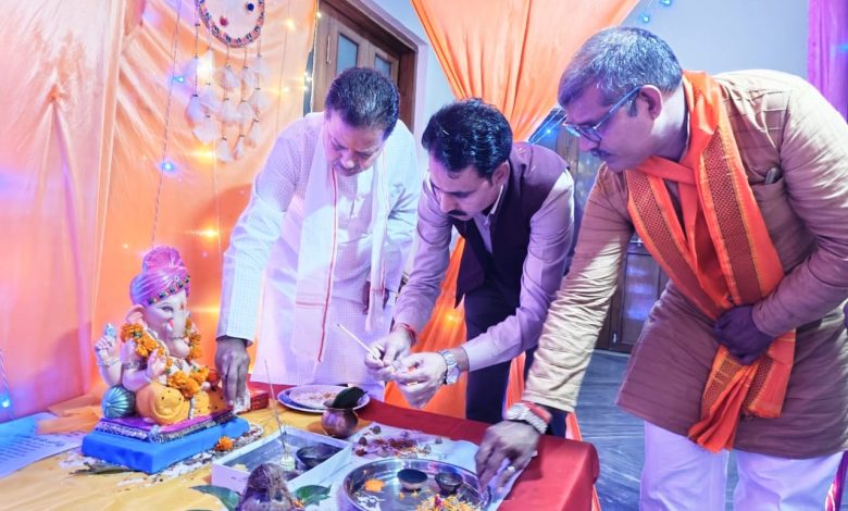 पूर्व मंत्री रामपाल सिंह व अन्य नेताओं ने गणेश जी की पूजा कर लिया आशीर्वाद