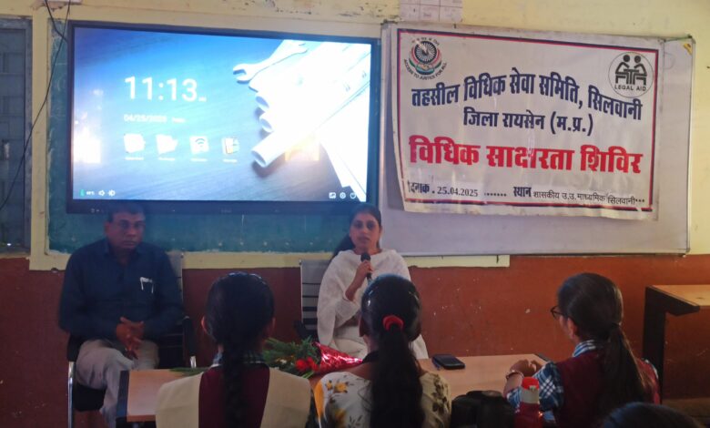 सिलवानी । प्रधान जिला एवं सत्र न्यायाधीश रायसेन अनिल कुमार सुहाने के मार्गदर्शन में, तहसील विधिक सेवा समिति सिलवानी द्वारा दिनांक 25 अप्रैल 2025 को शासकीय उ.उ. माध्यमिक विद्यालय सिलवानी में स्थित विधिक साक्षरता क्लब में नव युवकों, किशोरो में बालकों एवं छात्रों में ड्रग तस्करी की रोकथाम विषय पर विधिक साक्षरता शिविर का आयोजन किया किया गया ।