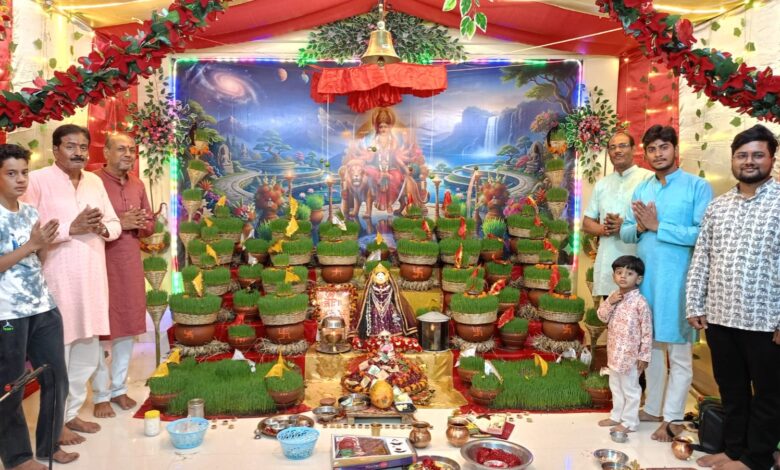 ज्वारे रखकर भक्ति भाव से हो रही माँ भगवती की उपासना, भव्य रूप से सजी माँ की बगिया