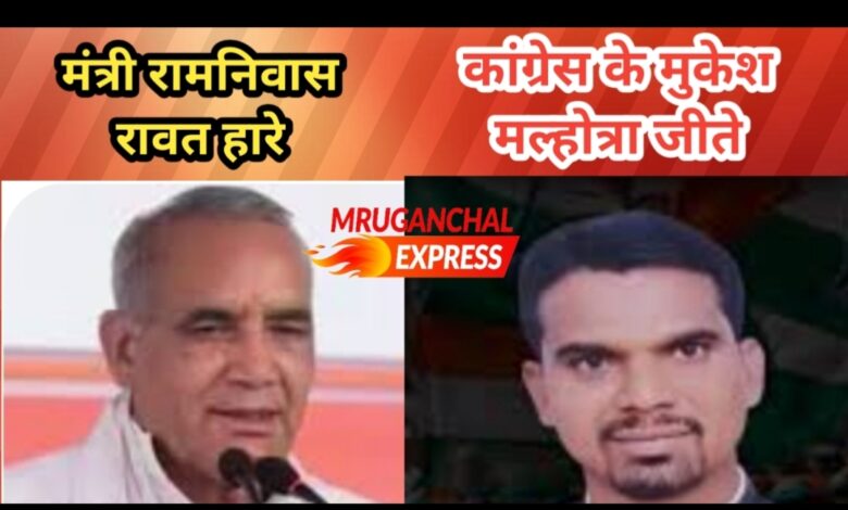 मंत्री रामनिवास रावत हारे, कांग्रेस के मुकेश मल्होत्रा 7 हजार 228 वोट से जीते