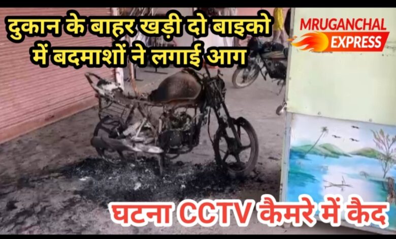 दुकान के बाहर खड़ी दो बाइको में बदमाशों ने लगाई आग, घटना CCTV कैमरे में कैद
