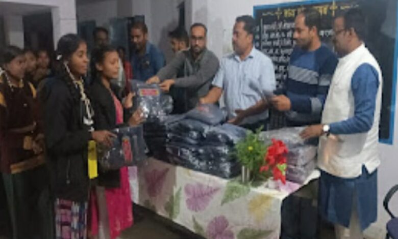 अनुसूचित जनजाति छात्रवास में विधायक ने छात्रओं को गर्म कपड़े वितरित किये
