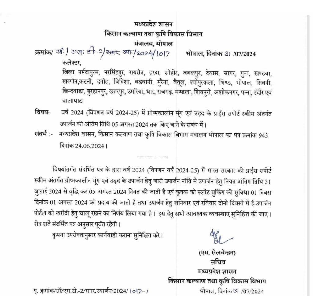 मूंग और उड़द की समर्थन मूल्य पर खरीदी अब 5 अगस्त तक, सरकार ने बढ़ाई तारीख