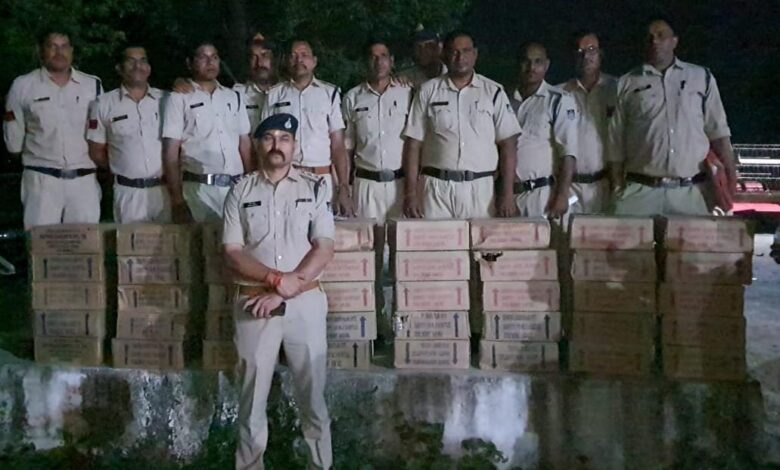 चेकिंग के दौरान स्टॉपर तोड़ते कार को पुलिस ने पीछा कर पकड़ी, कार में करीब 40 पेटी अवैध शराब को जप्त कर कार्रवाई