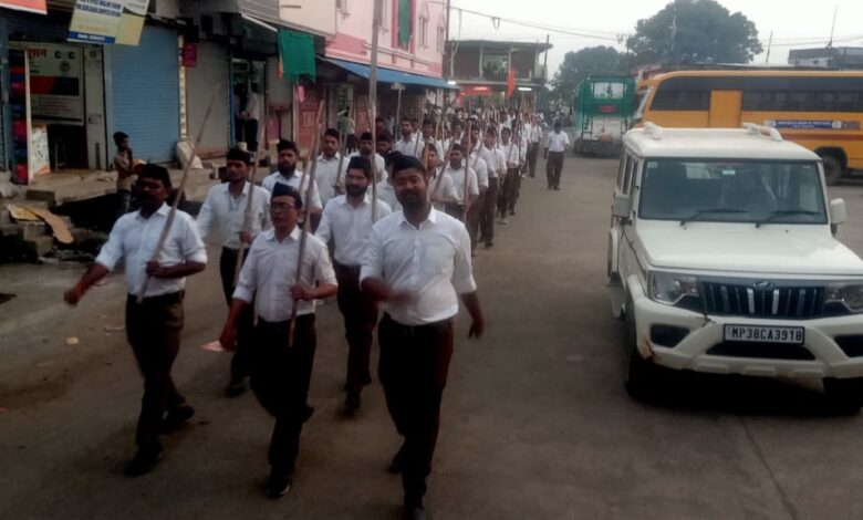 संघ का पथ संचलन निकला, हुआ स्वागत