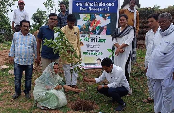 नगर परिषद लिधौरा में एक पेड़ मां के नाम अभियान अंतर्गत किया गया पौधरोपण