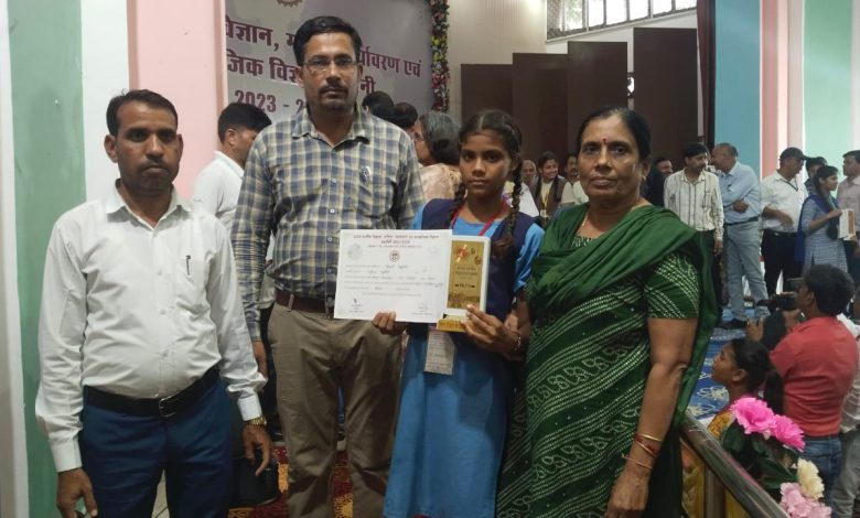 राज्य स्तरीय गणित, पर्यावरण एवं सामाजिक विज्ञान प्रदर्शनी में शिवानी प्रदेश में रही द्वितीय