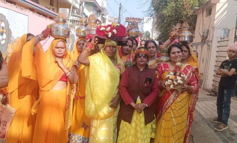 शिवधाम मे श्रीमदभागवत सप्ताह ज्ञान यज्ञ, खैर माई मंदिर से निकाली गई भव्य कलश शोभा यात्रा