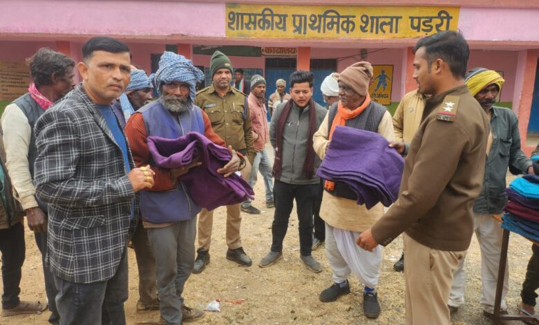 कड़ाके की ठंड में समाज सेवी ने वितरण किए 60 लोगों कंबल