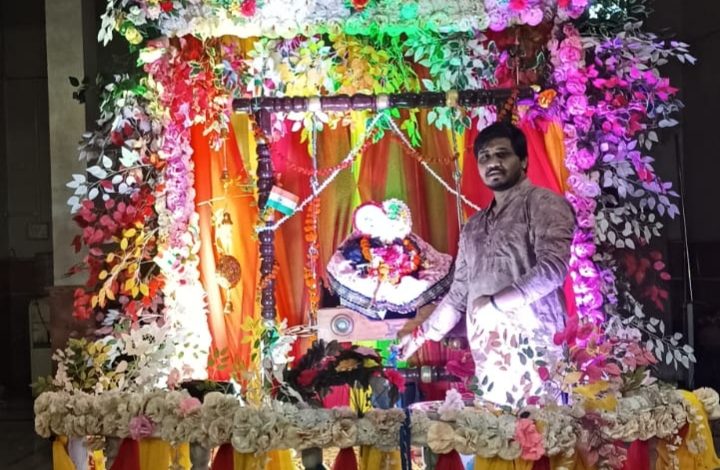 जन्माष्टमी के लिए सजाये जा रहा मंदिर