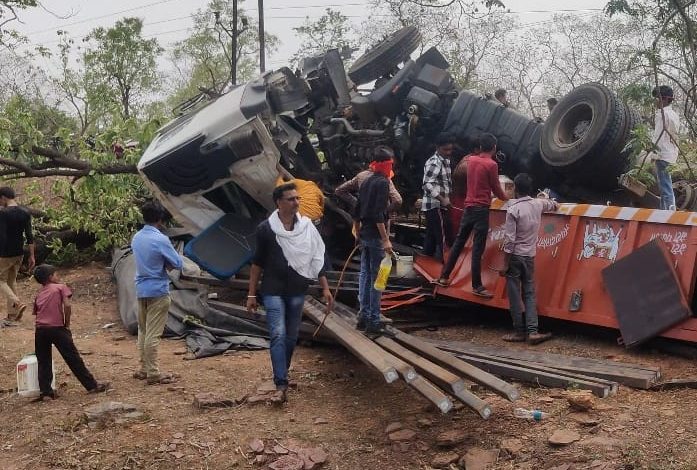 पेड़ से टकरा कर पलटा ट्राला, चालक परिचालक बाल बाल बचे, हादसे का देखकर रोंगटे खड़े हो जाएंगे