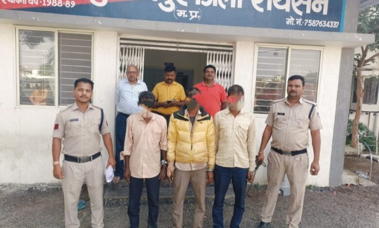 आरोपियों द्वारा गोवंशों को निर्दयता पूर्वक ले जाने पर पुलिस द्वारा तुरंत कार्रवाई करते हुए 19 नग गोवंश आरोपियों से मुक्त कराये गए। गोवंशों को सुरक्षित देहगांव गौशाला में छोड़ा गया है। आरोपियो के विरूद्ध पशु क्रूरता अधिनियम की धारा 11 मध्य प्रदेश गोवंश प्रतिषेध अधिनियम की धारा 4,6,9 का प्रकरण कायम किया गया एवं तीन आरोपियों अख्तर मेवाती, वीरेंद्र बैरागी, इमरत अहिरवार को गिरफ्तार किया गया। शेष आरोपियों की गिरफ्तारी के प्रयास किया जा रहे हैं। घटना मे प्रयुक्त एक मोटरसाइकिल एवं एक बोलेरो भी जब्त की गई है।