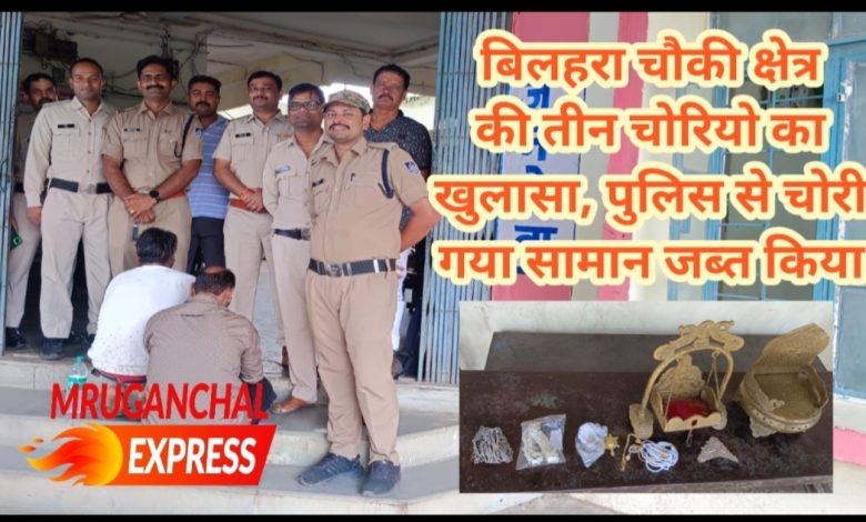 बिलहरा चौकी क्षेत्र की तीन चोरियो का खुलासा, पुलिस से चोरी गया सामान जब्त किया