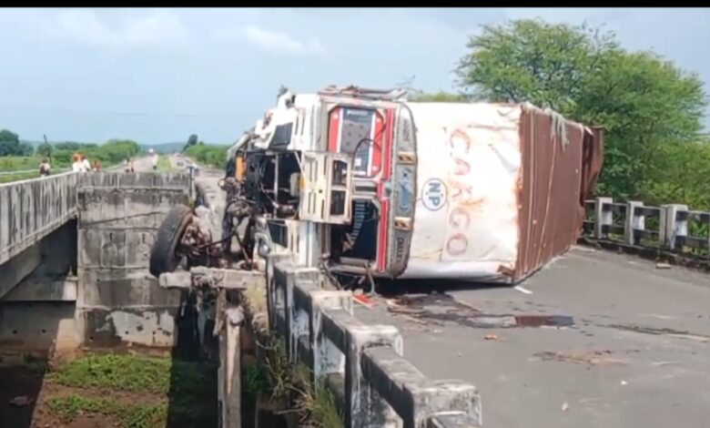 पांजरा पर कपड़े से भरा ट्रक अनियंत्रित होकर पलटा