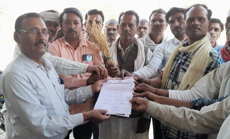 ओलावृष्टि से फसलों के नुकसान की जांच कराने ग्रामीणों ने कलेक्टर के नाम तहसीलदार को सौंपा ज्ञापन